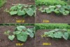 Today a somewhat different view of the individual plants...their crown ends and the first part of the main vines. I'm happy with what I see, strong main vines and a decent pattern of secondaries, and lack of weeds ;) (Just need to remove some of the oldest leaves of the 2064.2 and 870.4*.)