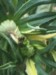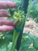 It is really hard to get a picture of what I am seeing. This plant has one big ribbon blossom coming out. The point of the pen shows where the flower starts. I am thinking this blossom is going to be difficult to get set. Leaf and vine growth is very deformed.