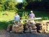 Rain rain , go away...too wet to work in the gardens today...but I finally got a chance to stack up all the rocks from chimney foundation...hey...I just noticed Lily rolling around in the neighbors dog crap...cool