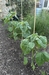 Aubergine (Eggplant) plants with a fair bit of foliage - it's more usual to trim to single stem but I let more stems grow. There are two plants here spaced about 3 ft apart