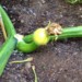 I then went down to the patch i have at the barn....the goats like to push over the fencing I've got up. The plant itself is fine and I pollinated it as well today. Off to the feed store to get an electric fence to zap the damn goats!