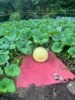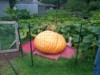 990 Swigert 57 dap in 400 sq ft patch.. Having an awful time measuring this thing because it is growing almost straight up and down and is about 6' across. Side to side measurement being the big issue. A foot differnce depending on which way I pull It. So I settled for a compromise between the two and split the difference. As you can see from previous pics the left upper side has filled out big time. in just five days. Hoping it continues for the rest of the kin. We have a 360 ott..168cc 90 ee..102 ss for 1080 lbs. for a gain of 33 lbs a day. We will let the scales be the judge if she holds together. Not bad for a first year grower in a 400 sq ft patch. Colin and Sheena have done everything I've told them and it's nice just to point a finger.