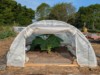 Took the hoops off yesterday as the secondaries had hit the sides and the main vine had reached the end. Unfortunately it is now cool and overcast (perfectly poor timing after weeks and weeks of nice sunny weather). This makeshift wind block will have to do for now.