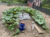 My patch has a little slope to it so a little excavation and a few 8x2's are used to get it right. Being level is very important for weight distribution and growth regularity. The scale is 5x5' which works well for my small pumpkins (sub 450").