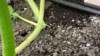 This is showing a small flower starting to grow out of the vine on top of the drip tape.