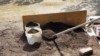 The vine burying mixture. The very dark material is compost from the landfill. The light soil is mostly sand and is a lawn mixture. The small left addition is mycorrhizae. the The middle is Azos. The right pile is Gaia Green 4-4-4.