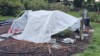 2 soil heating cables buried in a 6ft x 6ft square pattern. Frame erected over the soil heating cables ready for 6 mil greenhouse poly.