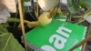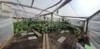 This is my CO2 setup for the hoophouse. The gas regulator is set on the lowest setting and I'm hoping a tank will last at least 10 days. We'll post when the tank empties. The 2 black lines runnig into the greenhouse are power and the other is the CO2 feed. This tube is strapped to the ridge beam to allow the CO2 to drop onto the plant.