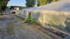 Fall rye seeds are sown and then covered with ReMay. This helps in keeping the patch from being a giant bird feeder and helps germinate the seeds a bit faster. You can see that the grass lifts the ReMay as it grows. Bricks are used at the edges to hold the cloth down as it is so light that slight winds will blow the ReMay off.
