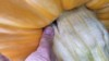 Big pumplins require big toys to move. Many thanks to fellow pumpkin grower, Harman, for lifting my big one with his big toy !!!