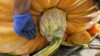 The crack Barron 2404. The pumpkin crack has not moved since surgery. The stem crack is widening as the pumpkin grows. From this picture, you can see that the point of the crack is going in different directions. I'm going to extend the crack another 1/2 ".