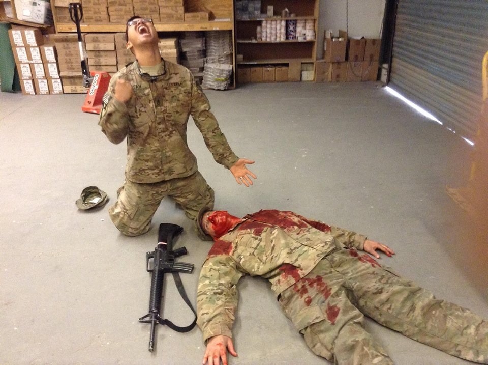 A few more months to go here, then the MN cold winter should be done!We had a fob drill, I was bleeding form the nose, ears, unconscious, medics found me out on the fob, they drove me to the medics hospital, where I was to be sent to Baghram air base. Was a lot of fun. Guy in the picture is asking god, why! how could this happen! can't wait to till my garden.