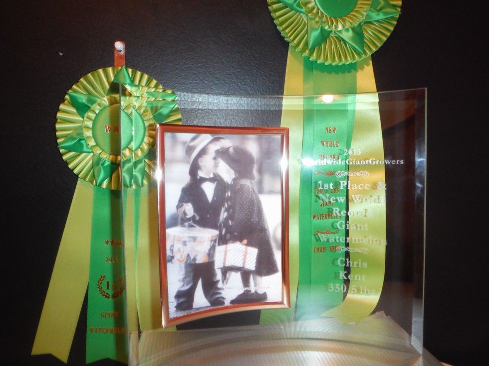Heres Chris Kents plaque & a WR rosette & 1st place Rosette.Any World Records grown will get a Special Rosette & plaque for there hard effort and great accomplishment.