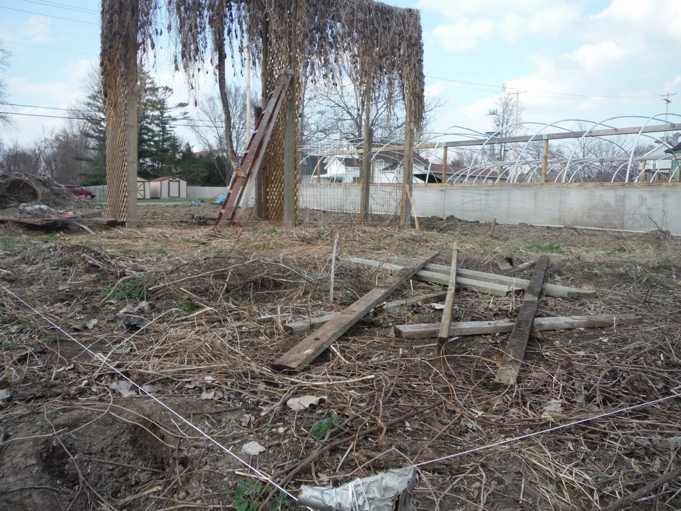 If you look at the garden as a whole its 10,000 sg feet.It would overwhelm you at thought of doing all this at once.I take it one corner at a time.I cleared some wood & old junk out of this corner.I will make a raised bed 24X20 & fill with top soil/compost/Alpaca poo.I figure if Chris&Todd are doing it, maybe this will give me warmer soil early on & get the plants moving faster in May.I know they do it for drainage & will do it for warmer soil.SHH!! Dont tell a soul!