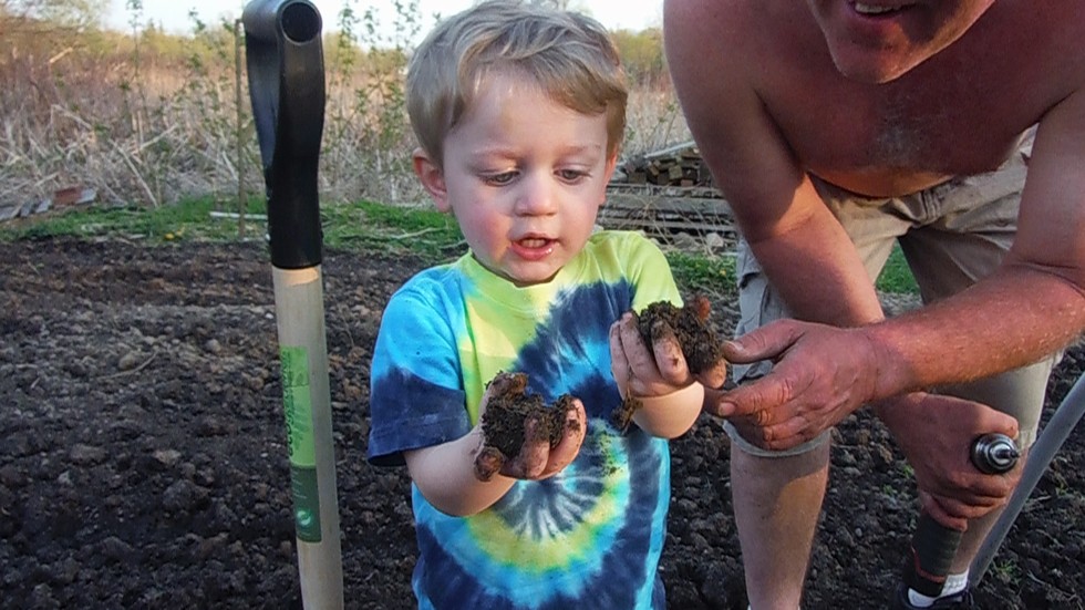 He loves the dirt.It was 85 today but to muddy to plant.I did however put the knee walls back on the Kin cave I.Calling for rain again tomorrow & Monday.I better get them planted & covered with plastic Sunday to keep the heavy rains off next week.Looks like it might be a repeat of last year.I hope not,But this climate change is starting to look predictable.