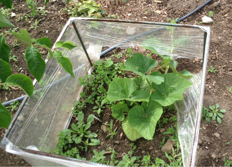 The bushel gourds are slow to get going. I hope I see some action soon. This is one of the two 245.5 English bushel gourds I have growing.