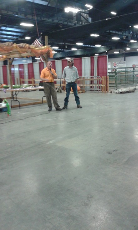 mr. todd dawson being interviewed as his melon hits the scale.todd is our state record holder for melons and a great guy. todd will be carving a pumpkin at the fair this year, he's never carved one before but you should see how talented he is with his amazing ice sculptures so i think he will do just fine,thanks for agreeing to do this todd, knock their socks off bro.