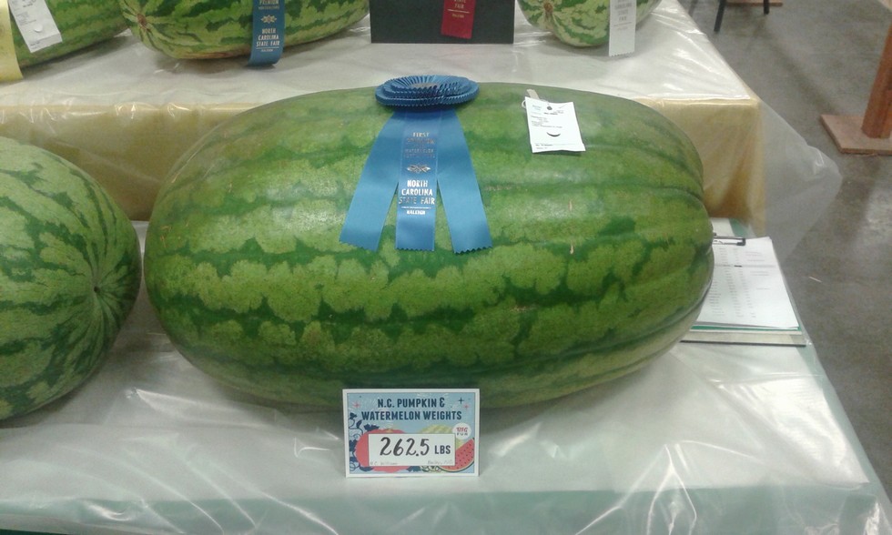 this is mr. h.c. williams blue ribbon entry for biggest n.c. grown melon. very impressive melon.