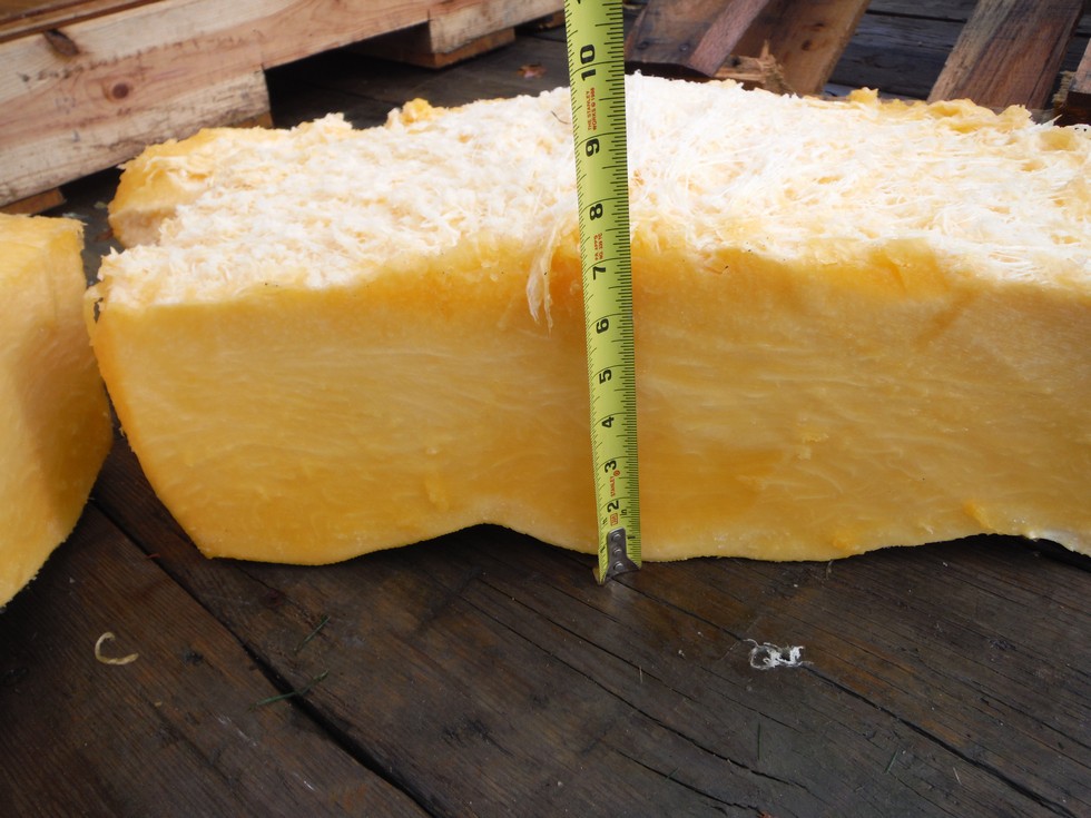 The bottom is 7 inches thick.We will find out how thick the front & sides are this Saturday when we carve her for the kids.Thinking a traditional face with triangle eyes and such. Good seed count, so 100 seeds will go to OVGPG seed sale.Plus any clubs that ask will get a couple sets.Its AWL good!