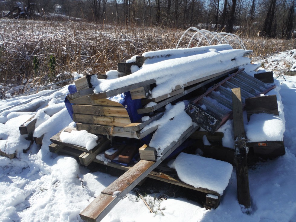 Screen house walls are stacked.