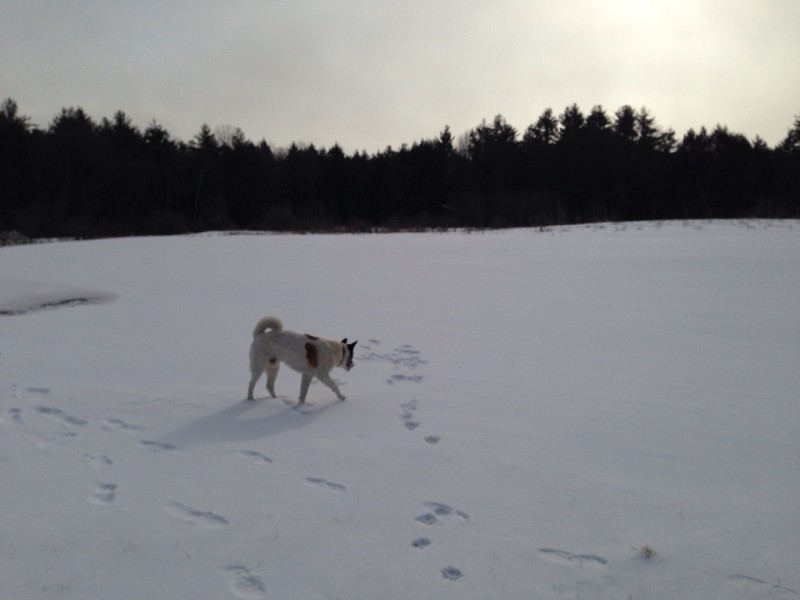 My dog Dozer out checking on the patch for moles !!!! Very cold here in Vermont for the last 4 days !!!! Got to -14 below the other morning !!!!