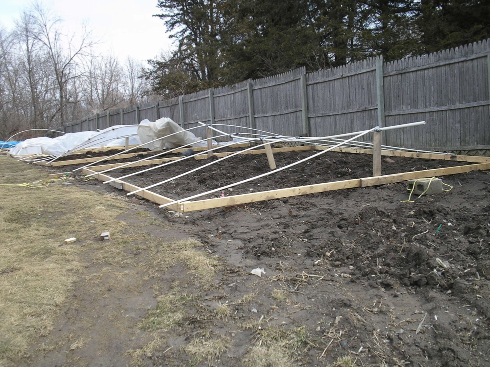 Winds gusting 0ver 40 mph wrecked my hoops. For the second time. Black dog mood. Could be another late start this year.