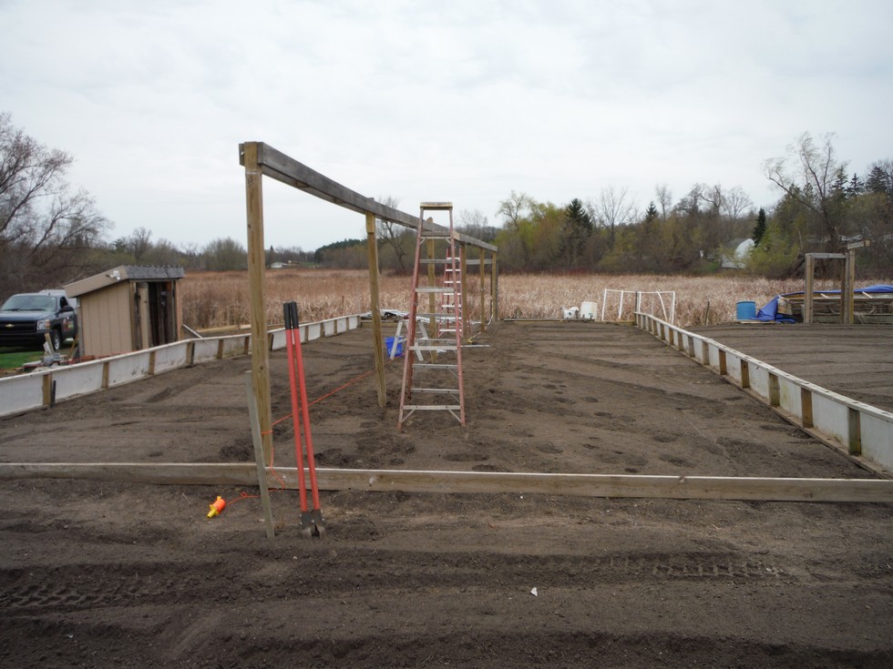 Ok Kin Cave 1 is framing is done,Thats it, the rest is hoops.I see so many greenhouses overbuilt to the max.This is all you need.Next we intall 34 foot hoop every 2 feet.There only 10$ a pc. 30 or so needed.Then the screen & door do on.About 2 days to assemble once the kit is made up.Very portable if you ask me.It dances in wind like a shock absorber.It has danced to 70 MPH winds with 0 damage to anything.I did however crap my pants while watching from the window.lol Well Time to go start seeds.