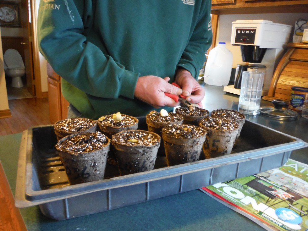 9 out of 30 are popped up enough to remove from heat.Bottom heat is not good once there up.I will pull another dozen in the morning as the soil was cracking.I heard some say they were told to never do this.Poppycock.The shells will only hinder them.The 1947s 2036s 1362 Sqush & all the 1985 Millers are up.The 2323s were cracking the soil but not up yet.