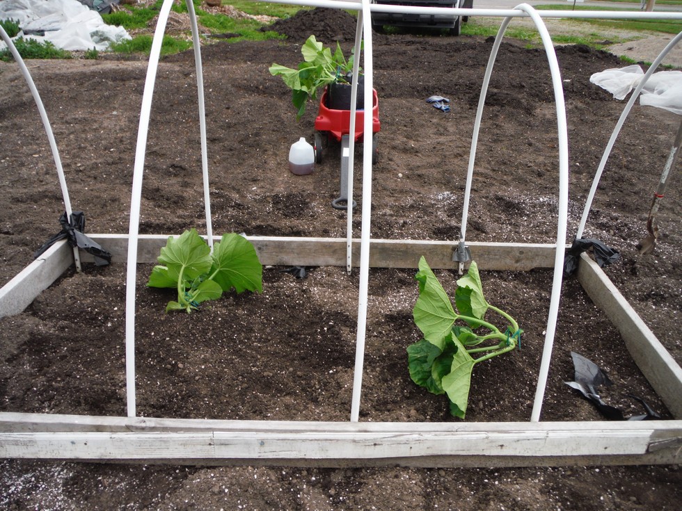 Borrowed Jacksons little red wagon.The Cali boys planted side by side 2036 & 1362 Pugh squash.The squash will grow to the north.Which will get a little more shade.The 2036 due south into the long gourd trellis.Should get a little more sun.I will put backups in this Saturday.Busy Busy Busy!!