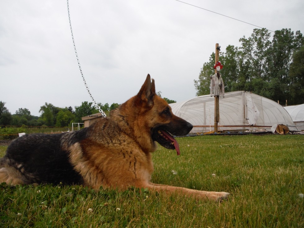 Sara is back to stay for good I will keep her long term as her breeding days are over.No worries this year on wood chucks deer or red neck intruders.Sara will eat them awl.lol