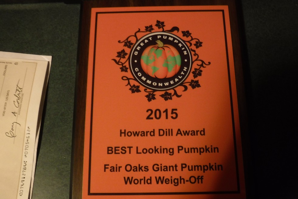 My first Howard DILL award on my 1177 Clementz 1947 X 1317 2015.This should get you a orange kin 90% of the time.Thanks Indiana Giant Pumpkin Growers!!!
