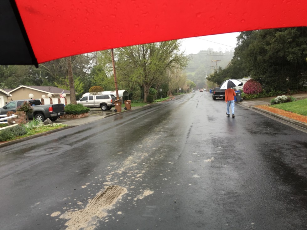 Our morning walk cut short by that much needed rain. Heading home to ponder the soil test results.