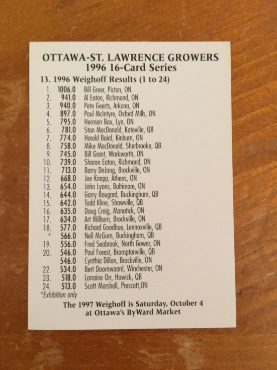 OTTAWA-ST LAWRENCE WEIGH OFF RESULTS 1996....PRETTY COOL