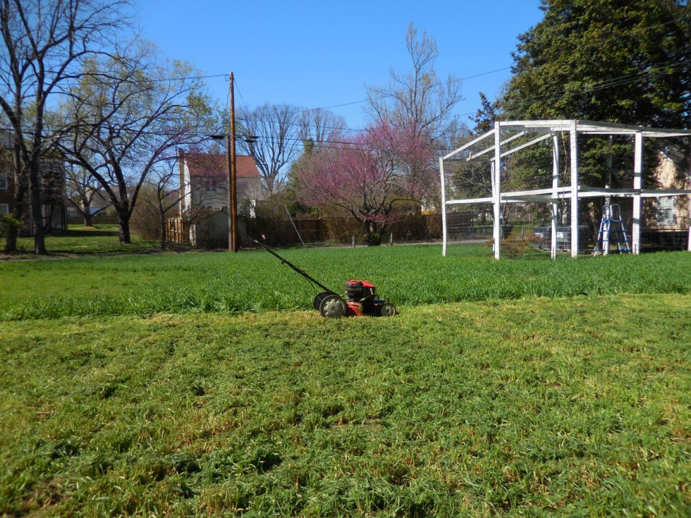 Mowing the rye grass for the third time.