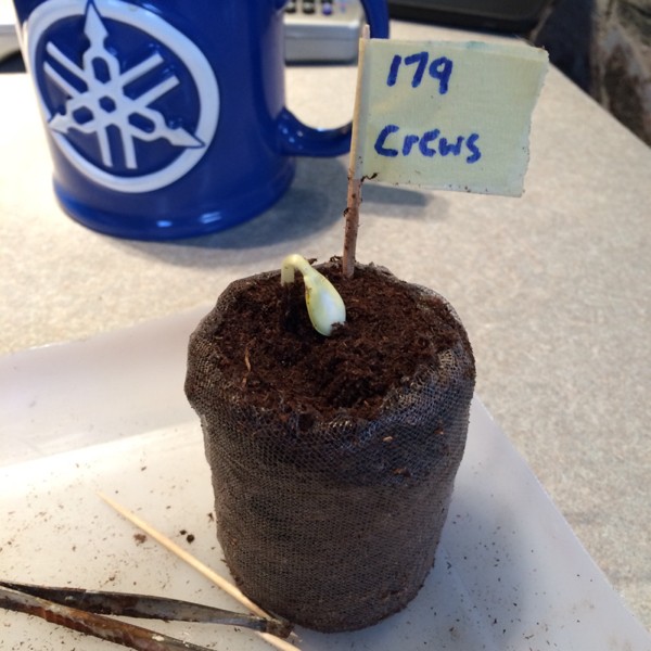 It's up! All but one seed are pushing up dirt. Now I'll stick it in a pot.