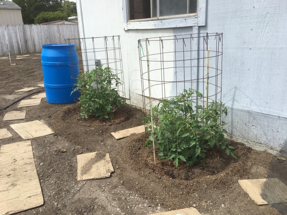 First the tomatoes outgrew their wall o waters, now they have outgrown their windbreaks. I can't wait until we have fresh homegrown tomatoes!