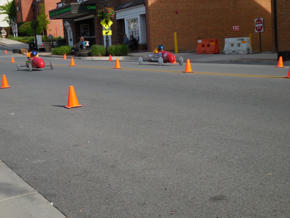 Down the hill.