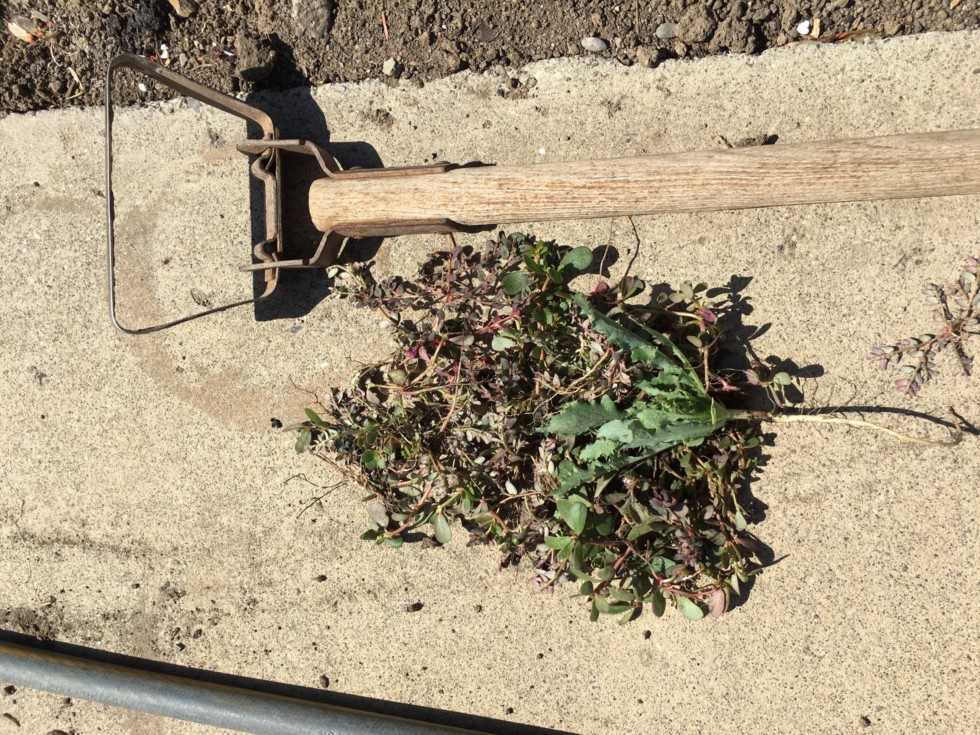 Todays pile of weeds. I love my hula hoe! 4 different varieties of weeds in this batch. Some are edible!