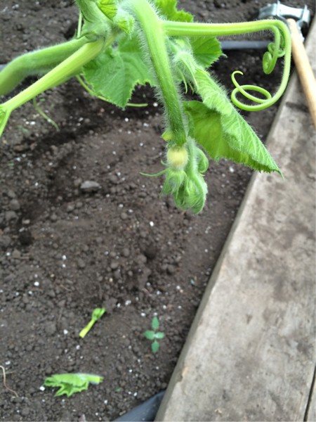 Holy crap! It's raining. About time. In the greenhouse doing some prep on some prospective fruit. I pinch the leaf and vine off when they are little.