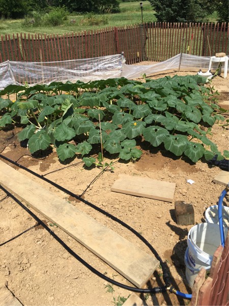 Pollinated the 359 for the first time this morning. Also set up some irrigation. Attempting to use micro sprayers under the canopy. I figure I can weed easily and hope to keep the leaves dry. Time will tell. Pic is the 1744.5 getting a test run