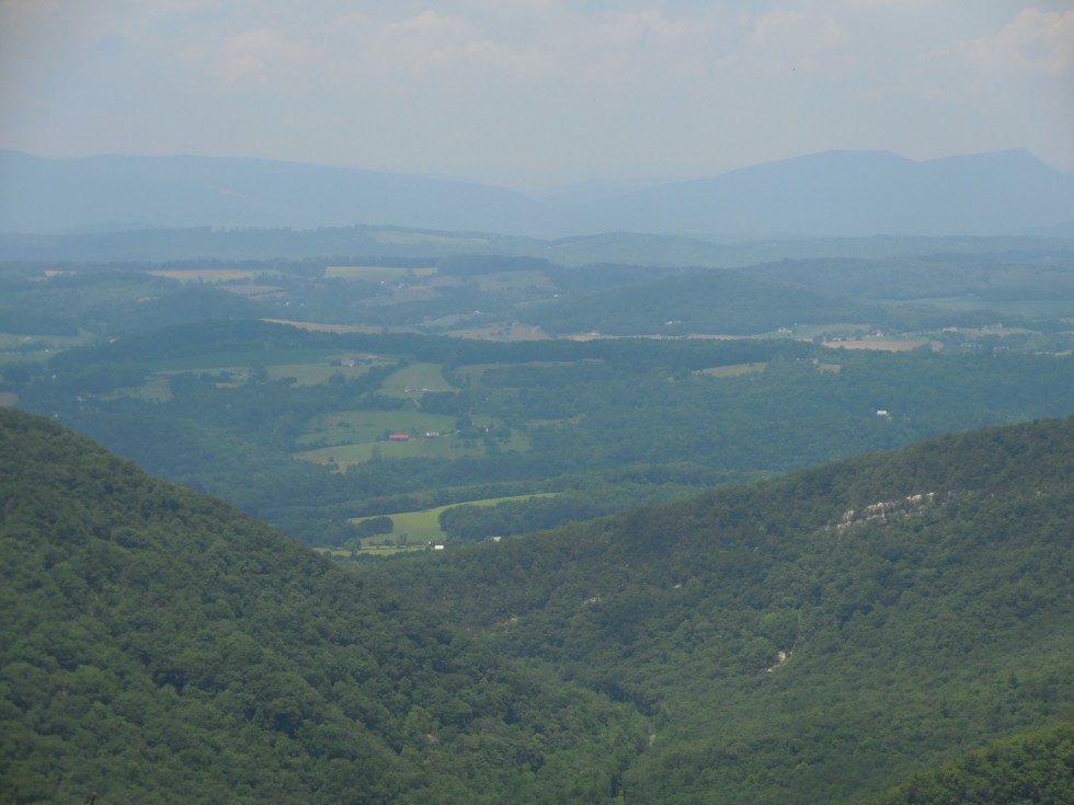 Up to the Blue Ridge Parkway headed south. I saw 3 young deer and a huge turkey hen with 2 little ones. LOL They were too fast for the camera, but I did try. This is the view west across the valley. Looking towards the Allegheny Mountains to the far west.