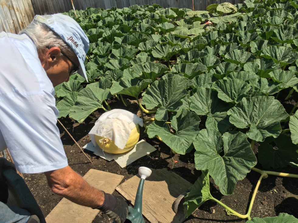 WAL-RUS gets a new home today. We put in a shift today! Burying, watering, measuring, building our first pumpkin tent of the season. We ARE going with WAL-RUS #1 as she has a nice shape and is growing well.
