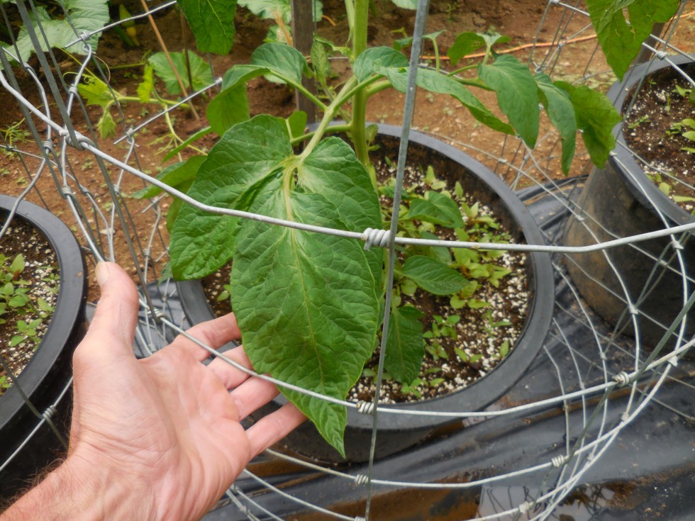 Big leaves on the 5.00 Knox plant. A picture of the 5.00 Knox (fused stem) http://www.bigpumpkins.com/Diary/DiaryViewOne.asp?eid=146599