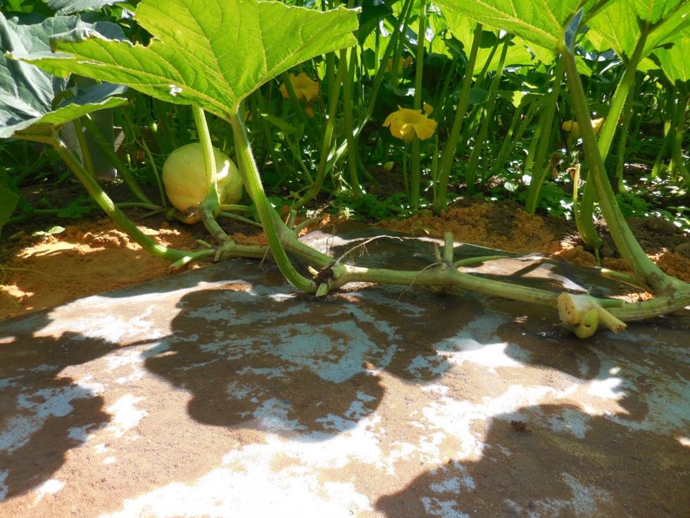 Very difficult to "set" a pumpkin on this plant. Just when you think you have it.......Aborts. Maybe it's sterile or half sterile or......Who knows? LOL. If this one takes, I'll move the board again.