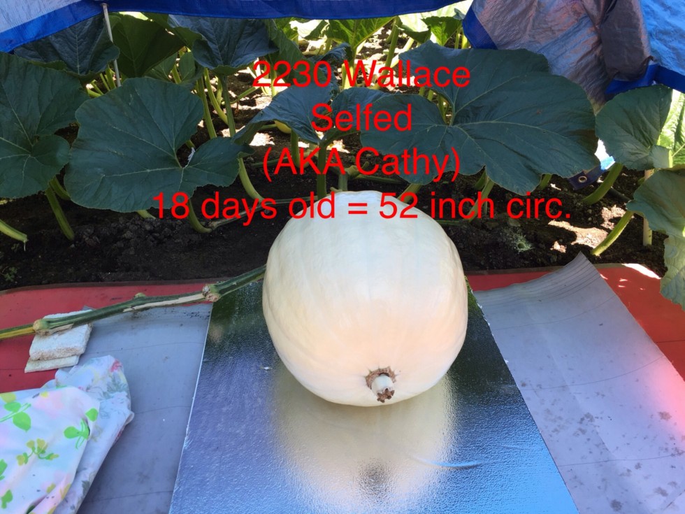 The pumpkin on the 2230 Wallace. Selfed. Grew 10 inches circ in the last two days.