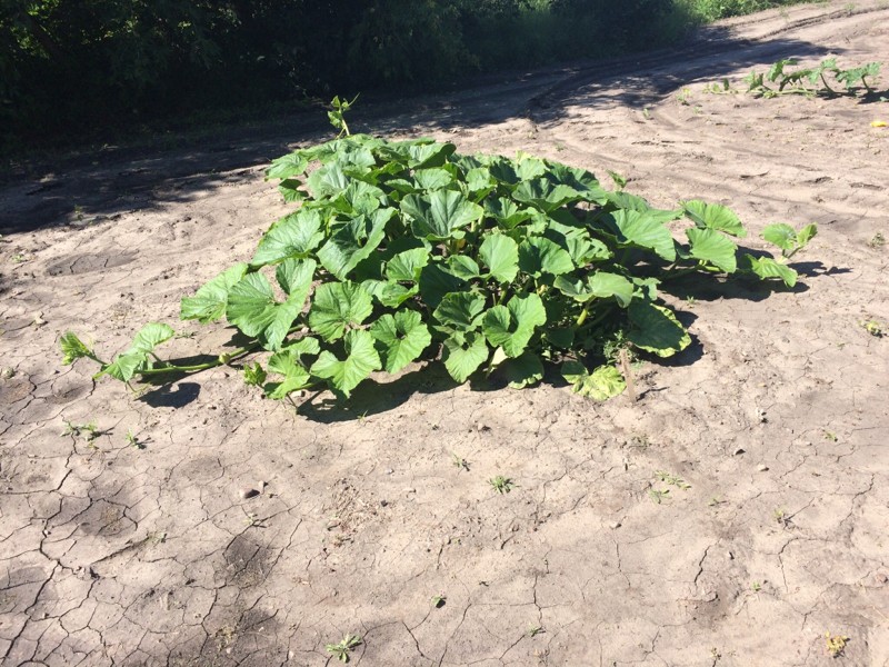 I have a couple of squash plants. There's some females ready tomorrow. These were backup plants that got planted. They take a long time outside without heat cables. The flood has receded.
