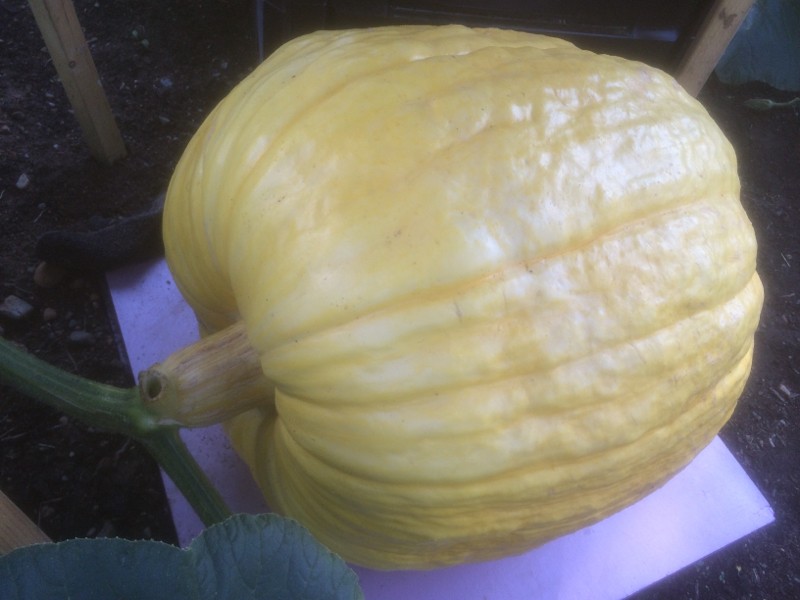 Small pumpkin gain 5 pounds overnight and is now 37 pounds, bigger one in picture gained 5 pounds and is now 90 pounds. Slow but sure :)