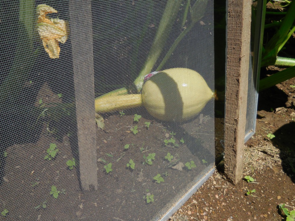 The pumpkins. Hopefully a "set" on the main vine of our late late plant. Plant looks great. 1309 Connolly.
