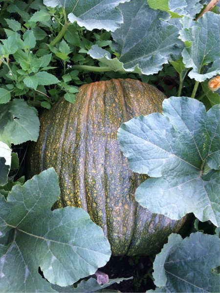 Main vine pumpkin on the 140 Crews plant that I wasn't sure I was going to keep. Pollinated sometime near the end of June. 69" cir