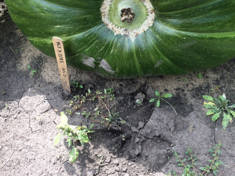 Moose was so close to the fruit that it got mud on it. Some crushed vines and a step on the crown area. Looks ok but some of the plants lost vines.